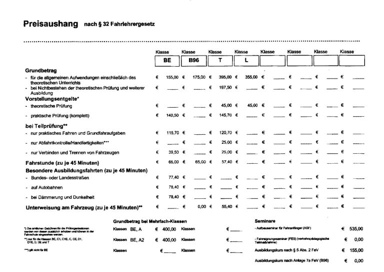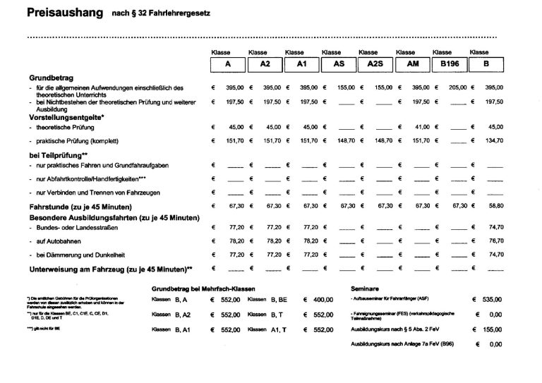 Preisübersicht